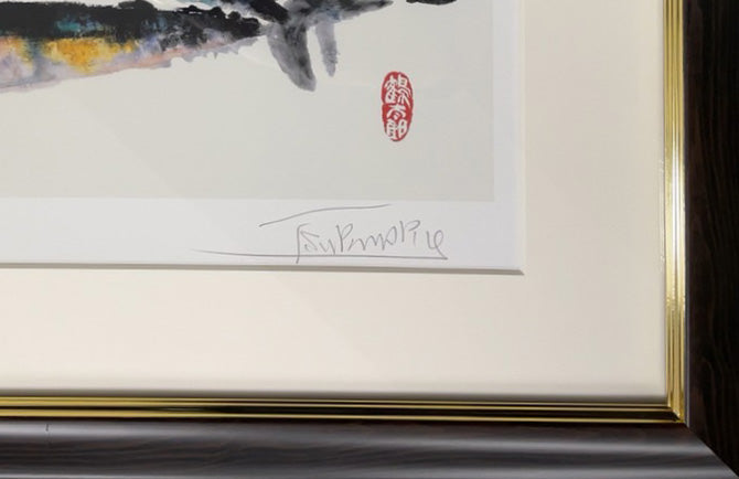 作品右下に本人の直筆サイン(鉛筆)が入ります。